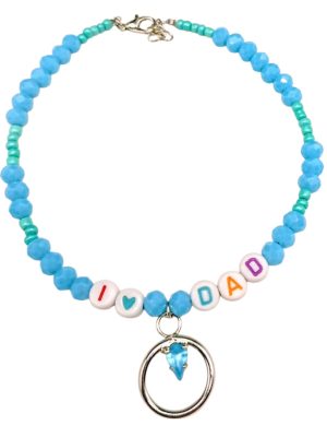 Personalized Large Dog Bandana Necklace – Custom Name Letter Beads – Denim Style with Cupcake Stamp – Blue Acrylic Beads, Smile, Heart & Paw Charms – Adjustable 42cm Length for Large Breeds