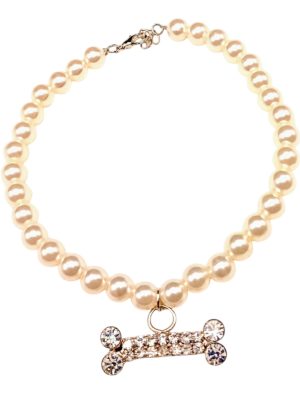 Luxury Bling Dog Necklace for Small & Medium Pets – Blue Faceted Glass Beads – Sparkling Rhinestone Bone Charm Pendant – Handmade Fancy Pet Jewelry – Adjustable Wedding & Birthday Dog Collar Accessory