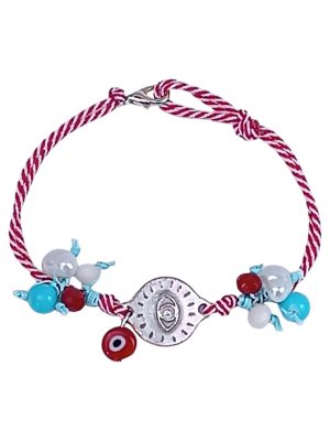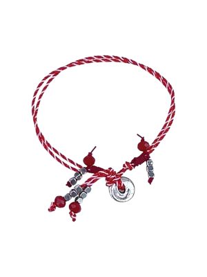 Boho “March Bracelet” with Evil Eye & “Love You” Charm – Handmade Red & White Macrame Bracelet with Glass Beads