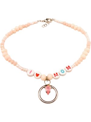 Custom Pink Beaded Dog Bandana Necklace with Cupcake Stamp – Personalized Pet Jewelry for Small Dogs & Cats – Pink Acrylic Beads with Smile, Heart & Paw Charms – Handmade 23cm Custom Length