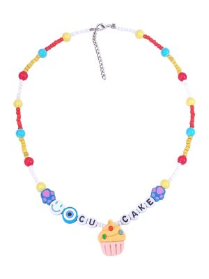Colorful Beaded Cupcake Necklace with Silicone Pendant – Fun 40cm Adjustable Cord Jewelry for Teens & Baking Moms