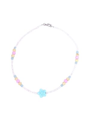 Girls 12+ Kawaii “Blue Flower Dream” Necklace – Handmade Pastel Beaded Necklace with White, Pink, Yellow & Blue Glass Beads and Flower Charm