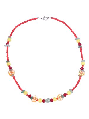 Girls 12+ Kawaii “Butterfly Garden” Necklace – Handmade Colorful Beaded Necklace with Orange, Yellow & Red Glass Beads, Aventurine and Butterfly Charms