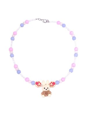 Girls 12+ Kawaii “Bunny Paws” Necklace – Handmade Pastel Beaded Necklace with Pink, Lilac & White Glass Beads and Cute Bunny Charm