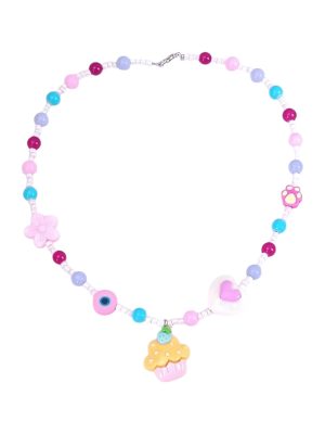 Colorful Cupcake Beaded Necklace – 40cm Cord with Acrylic & Glass Beads and Heart Cupcake Pendant