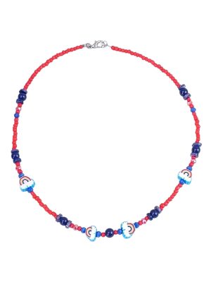 Girls 12+ Kawaii “Rainbow Clouds” Necklace – Handmade Beaded Necklace with Orange & Blue Glass Beads and Polymer Clay Rainbow Charms