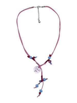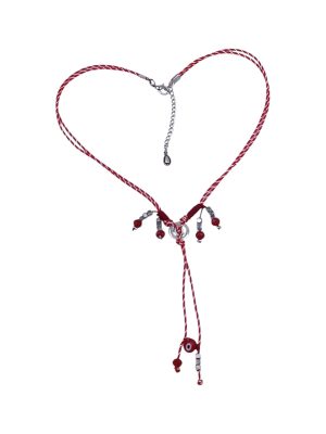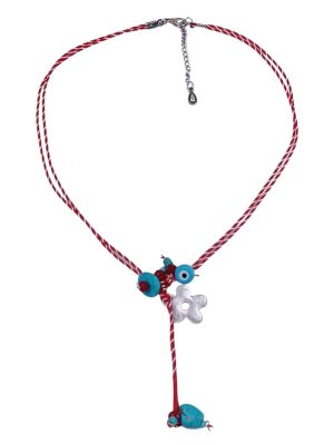 Handmade Boho Y‑Necklace with Red Coral, Turquoise Howlite, Agate & Glass Multicolor Beads | Adjustable Red‑White Cord with Makrame | Greek March Necklace