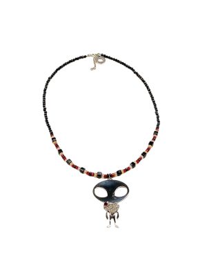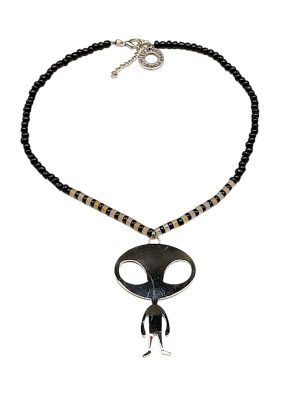 Handcrafted Alien Visitor Necklace – Artisan 5mm Brass with Silver Metallization – Intergalactic Statement Jewelry – Glass, Howlite & Agate Beads