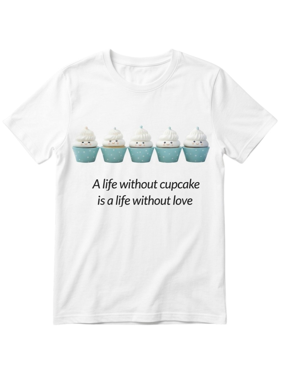 A Life Without Cupcake is a Life Without Love T-Shirt – Cute Blue & White Cupcakes Graphic Tee – Sweet Dessert Quote Shirt for Girls 12+ & Women – Premium Soft Cotton