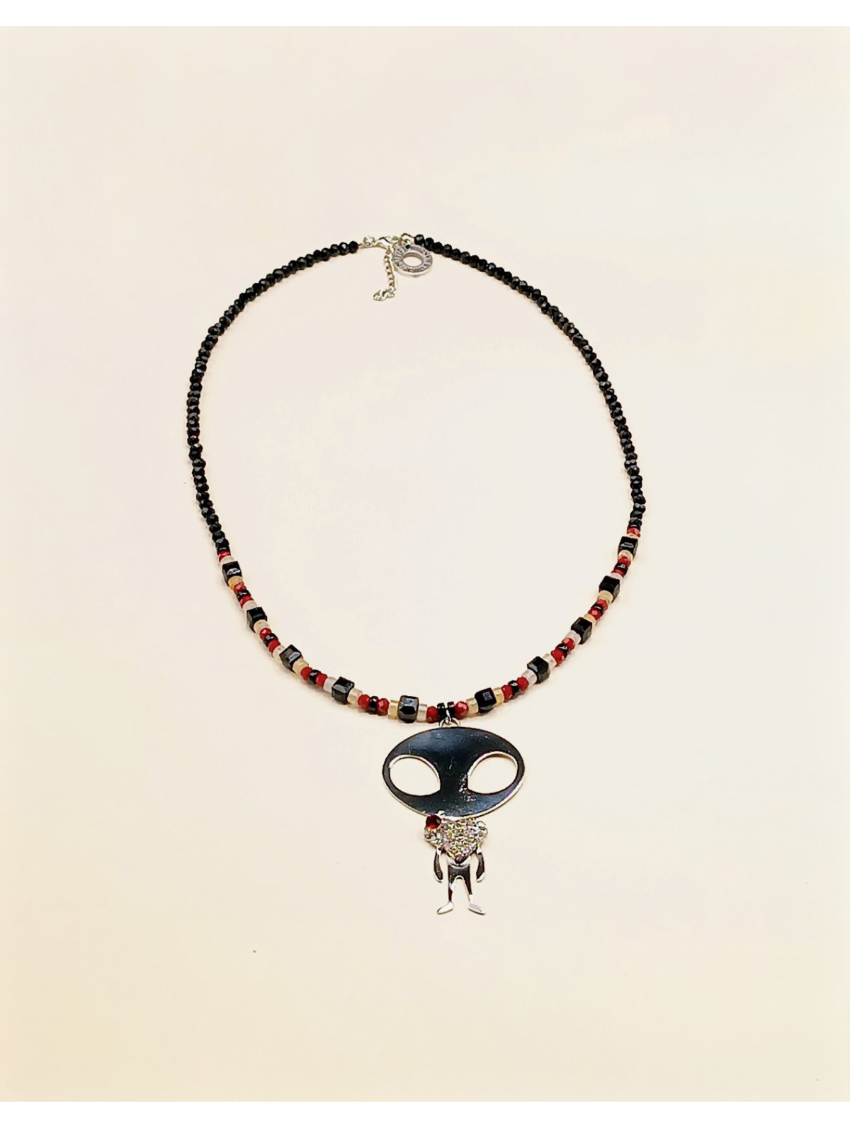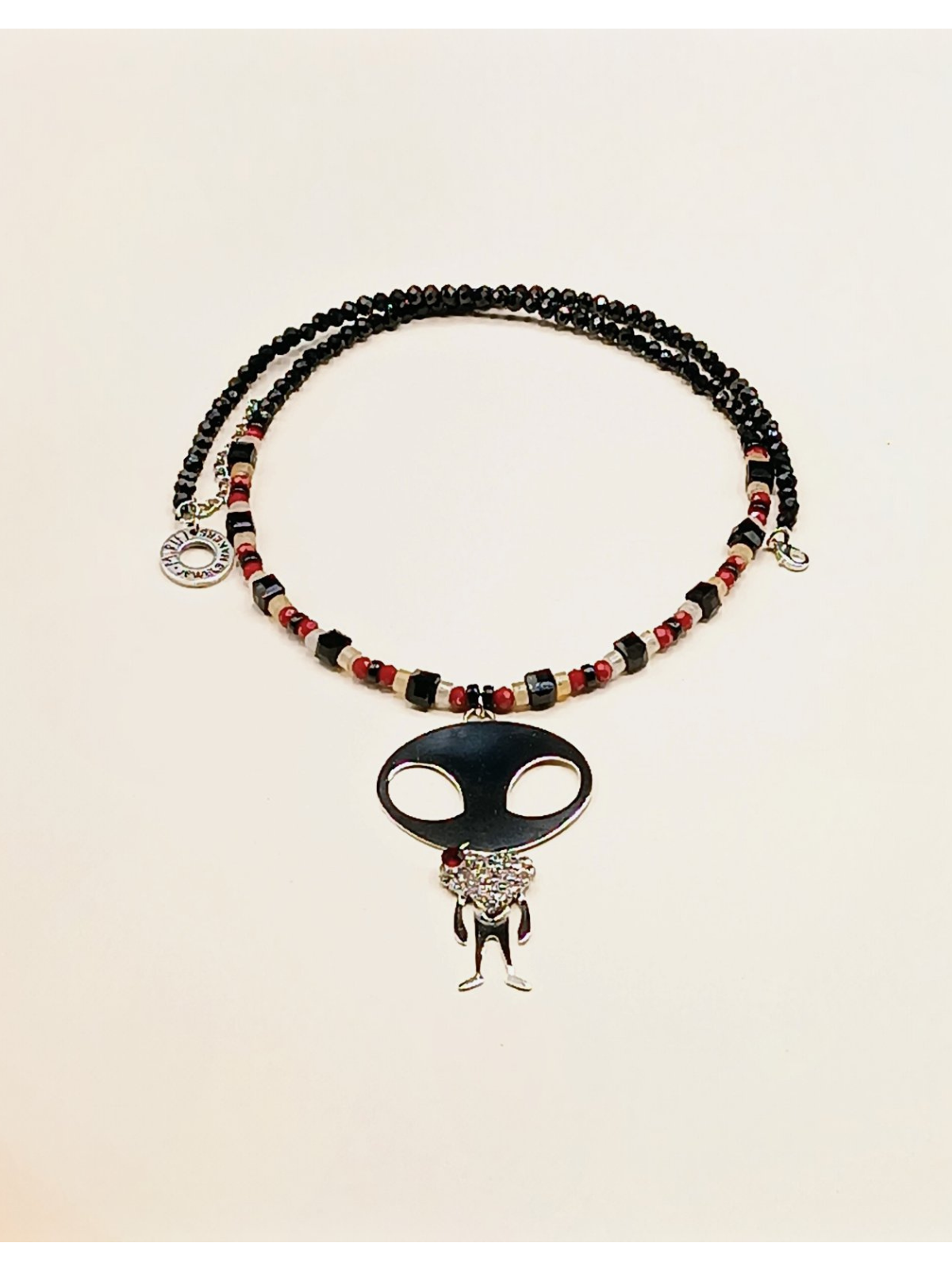 Beaded Necklace with Alien Charm and Heart Design