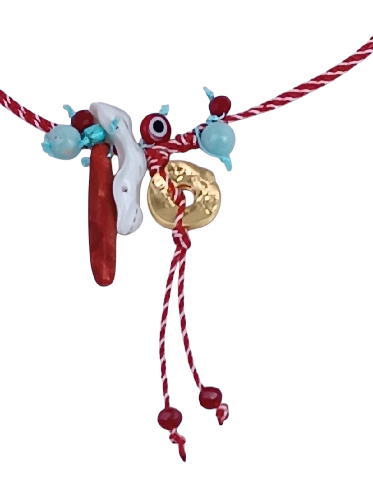 Inspired by the Greek tradition of the March bracelet, this handmade boho necklace celebrates spring and renewal.