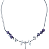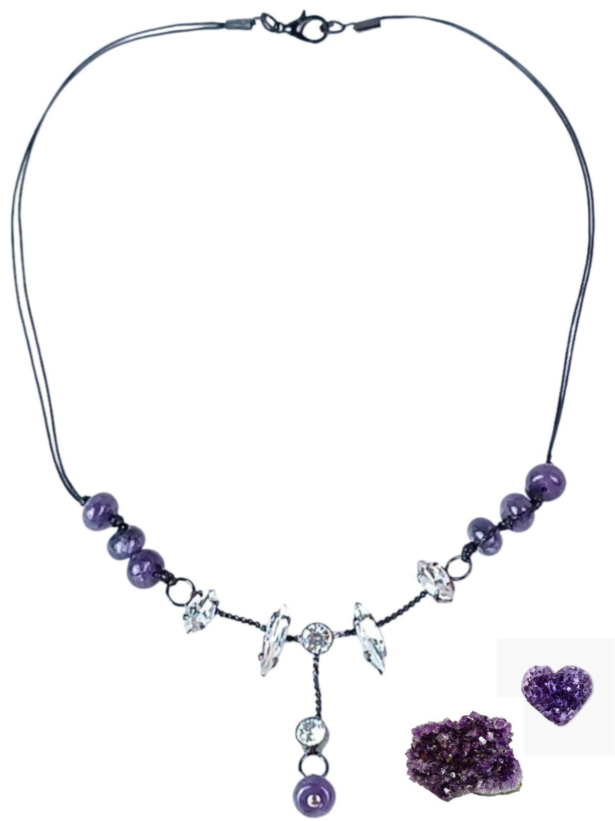 Cucake Amethyst & Rhinestone Statement Necklace – Purple Beaded & Crystal Boho Jewelry – Black Cord Necklace – Dainty Gemstone Gift for Her
