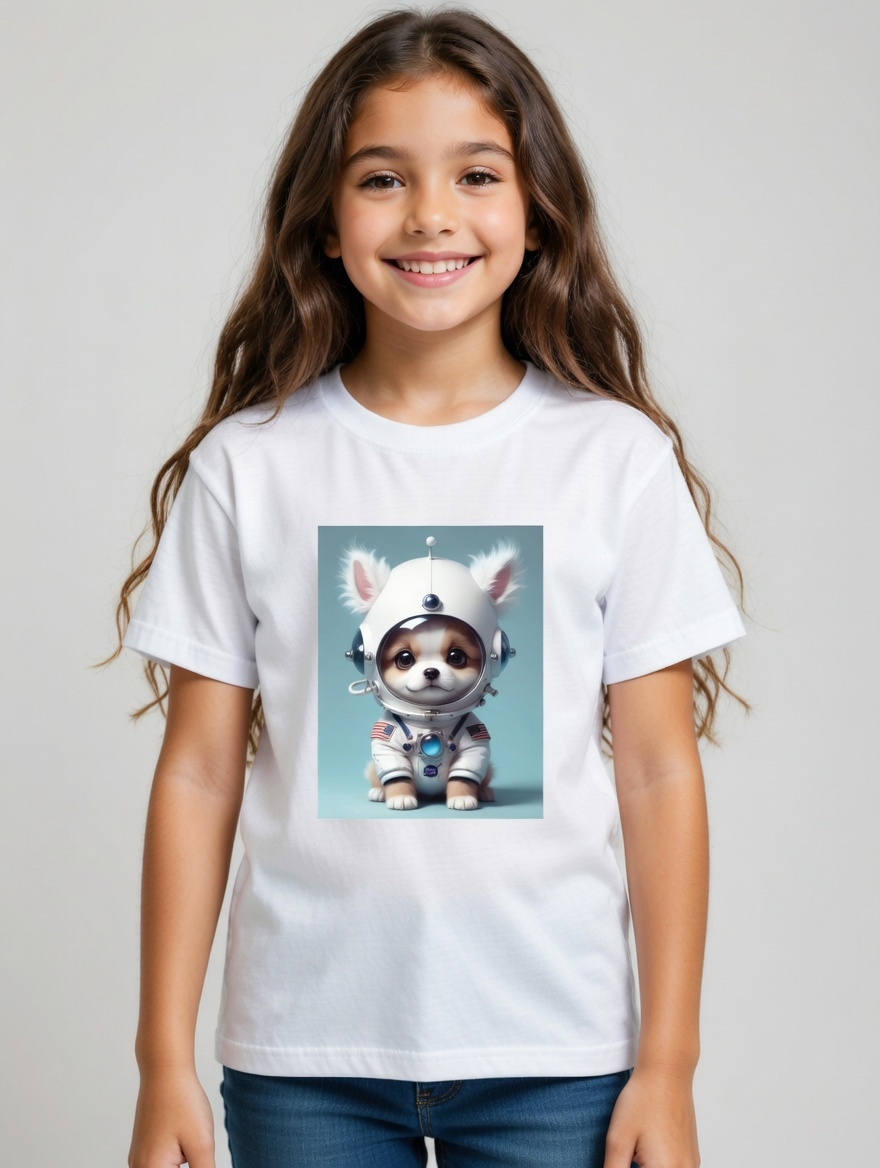 Adorable Astronaut Design: Features a charming, realistic puppy in a detailed space suit, perfect for dog lovers and space enthusiasts. 🌌