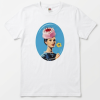 Fruit of the Loom Women’s Jeweled T-Shirt – “Miss Cherry Cake Lady” Vintage Portrait with Pearls & Light Blue Rhinestones – Hand-Embellished Art Tee