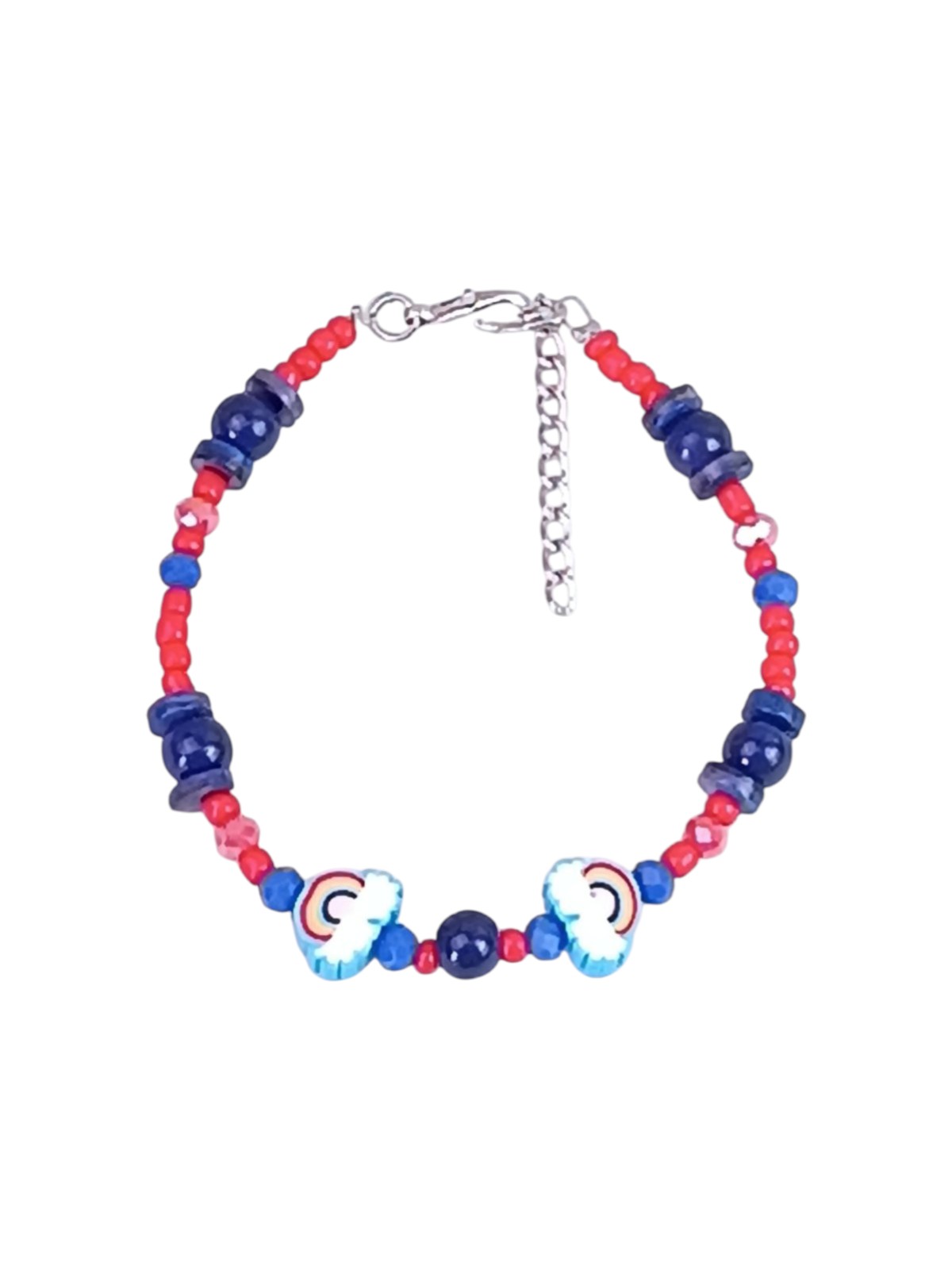 Girls 12+ Kawaii "Rainbow Clouds" Bracelet – Handmade Beaded Bracelet with Orange & Blue Glass Beads and Polymer Clay Rainbow CharmsGirls 12+ Kawaii “Rainbow Clouds” Bracelet – Handmade Beaded Bracelet with Orange & Blue Glass Beads and Polymer Clay Rainbow Charms