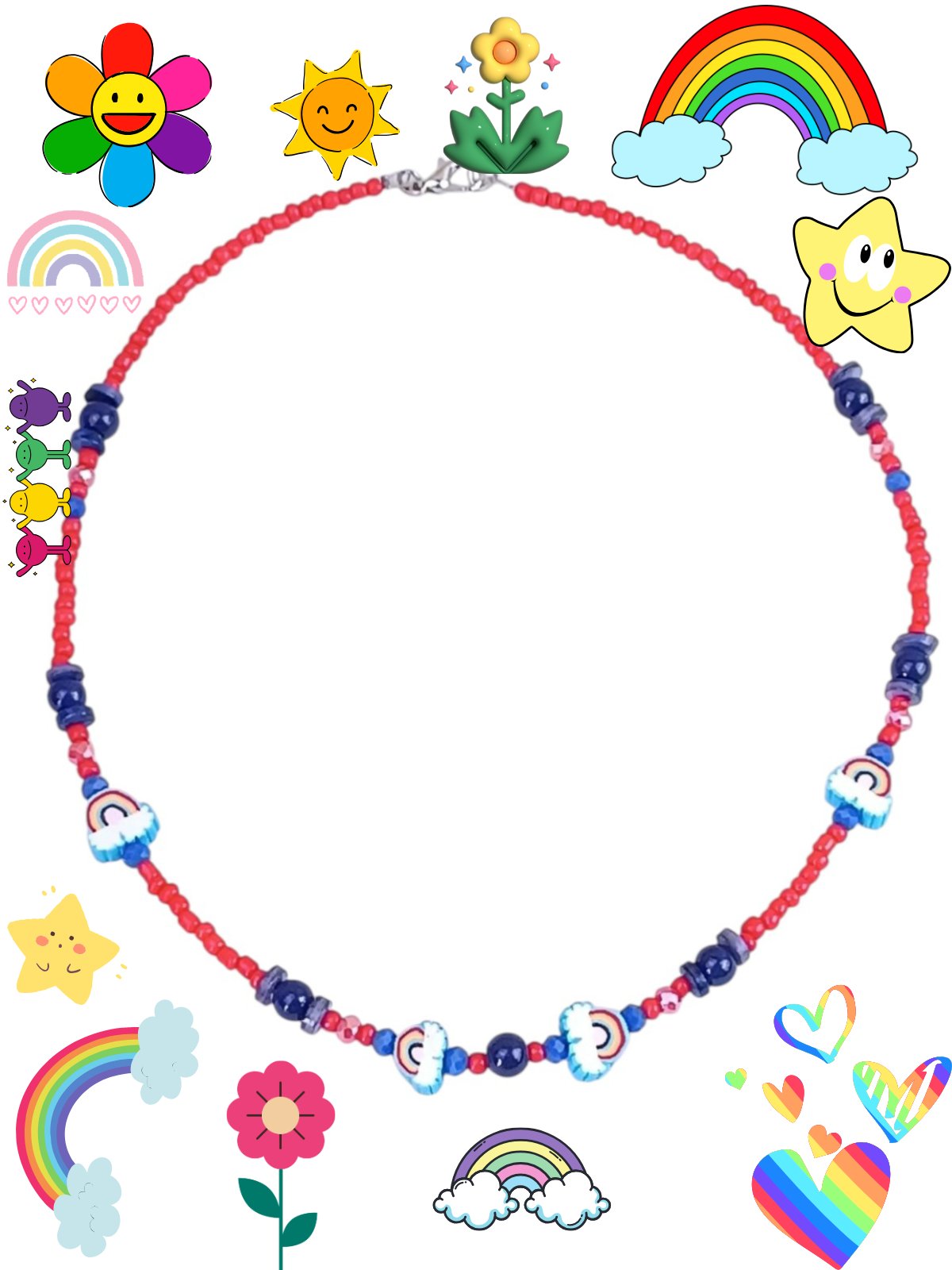 Bright and joyful like a summer sky after the rain! ☀️ The Rainbow Clouds Necklace is handmade with vibrant orange and blue glass beads, decorated with adorable rainbow polymer clay charms. 🌈☁️
