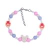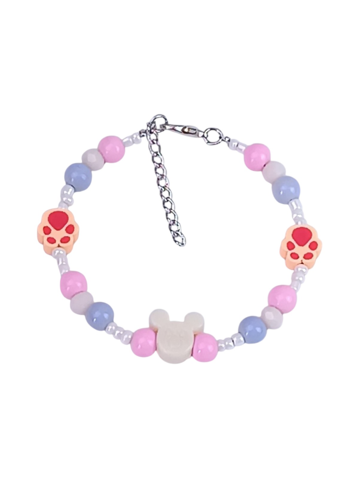 Handmade Kawaii Beaded Bracelet for Girls 12+ – Pastel Pink, Lilac & White Glass Beads – Cute White Mouse & Paw Print Charms – Preppy Aesthetic Friendship Bracelet – Adjustable Jewelry Gift