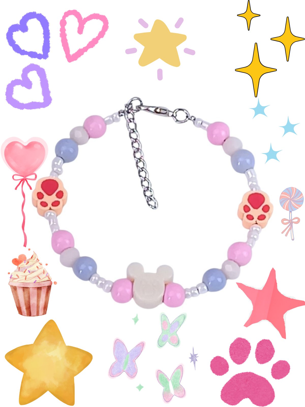 🐾 ADORABLE ANIMAL CHARMS: Featuring two cute paw prints and a central white mouse charm. The ultimate accessory for animal lovers and Kawaii fans!