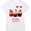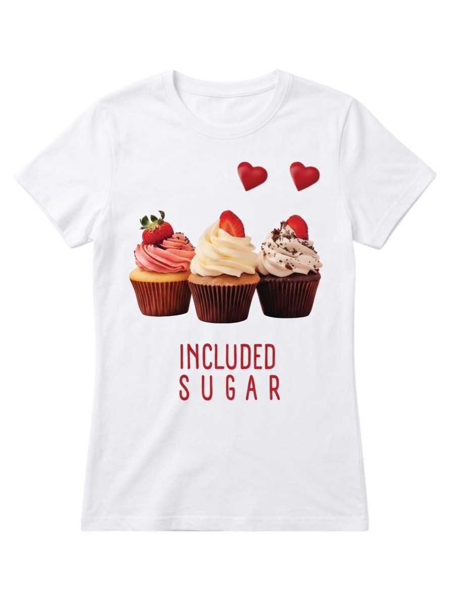 Included Sugar T-Shirt for Girls 12+ – Cute Trio of Cupcakes Graphic Tee – Funny Sweet Tooth White Cotton Top – Heart & Dessert Lover Shirt