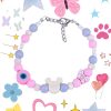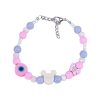 Kawaii Dreamy Pastel Beaded Bracelet for Girls 12+ – Pink, Lilac & White Glass Beads – Cute Mouse & Butterfly Charms – Evil Eye Protection Jewelry – Adjustable 15cm+ Extension