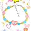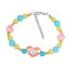 Kawaii Pastel Heart Beaded Bracelet for Girls 12+ – Blue & Yellow Beads – Cute Polymer Clay Paw Charms – Handmade Preppy Aesthetic Jewelry – Adjustable 15cm+ Extension Chain