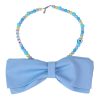 Large Handmade Colorful “LOVE” Dog Necklace – Detachable 15cm Blue Fabric Bowtie – Purple, Blue & Yellow Beaded Jewelry – Good Luck Evil Eye & Heart Charms – Adjustable 40cm Custom Length