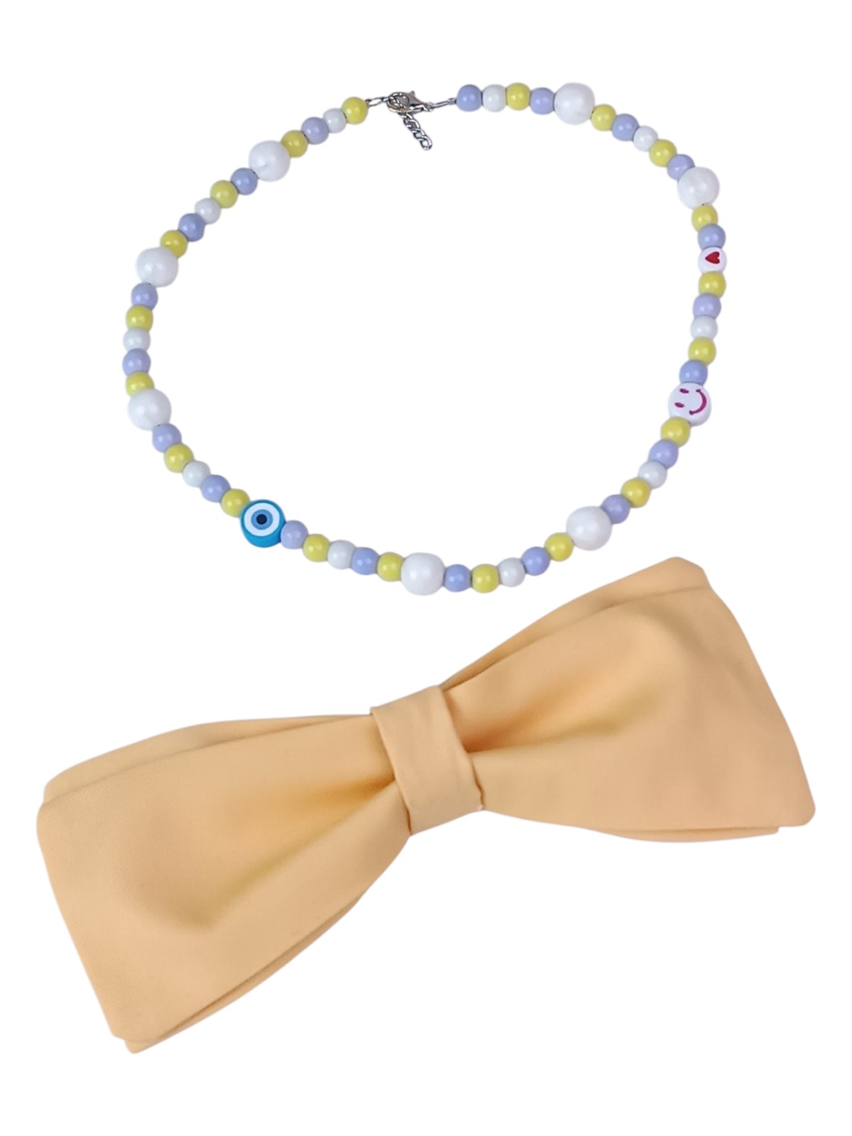 🎀 STUNNING OVERSIZED BOW: Features a vibrant, double-stitched yellow fabric bowtie with a 15cm width. The bowtie is detachable, offering two distinct and stylish looks.