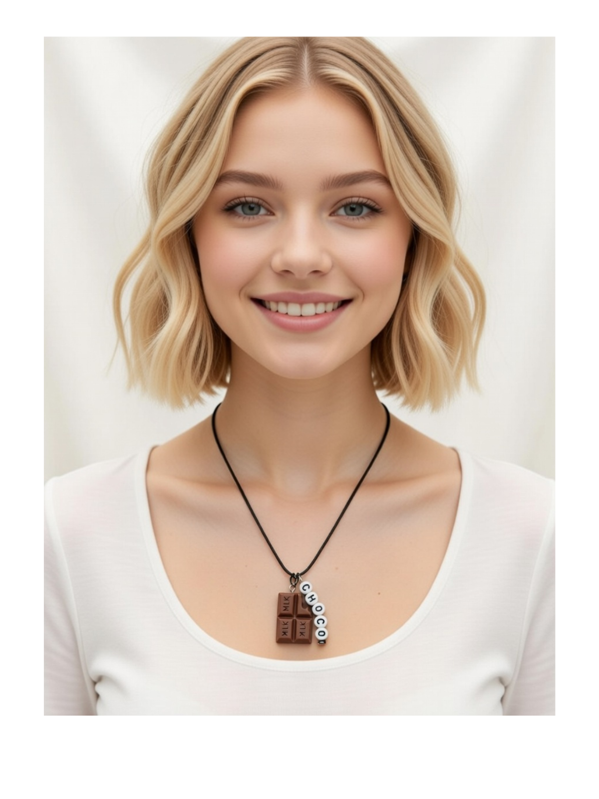 Sweet Choco Letters Necklace – Handmade Chocolate Bar Pendant with Cute Letter Beads Woman & Teen 12+