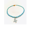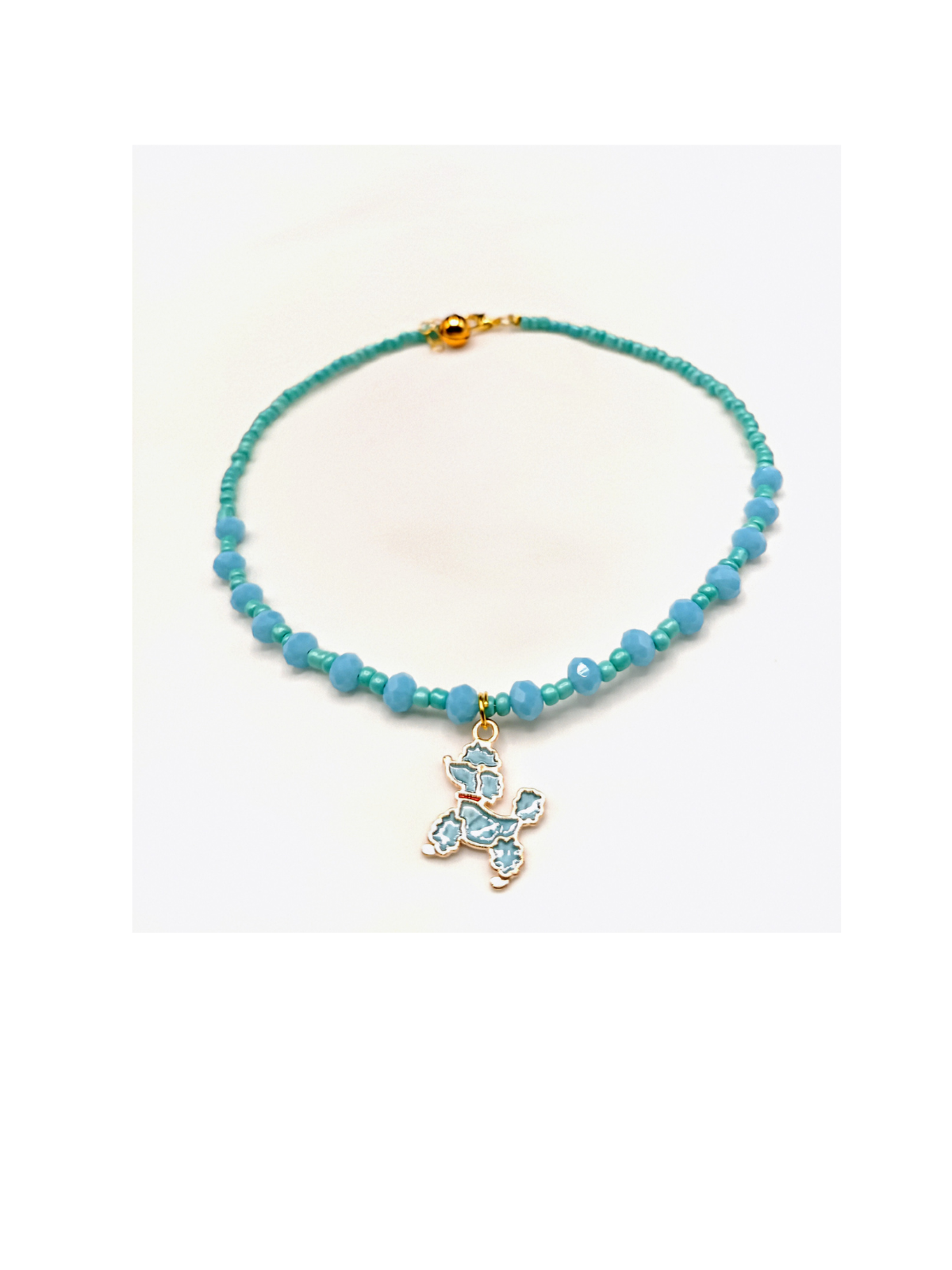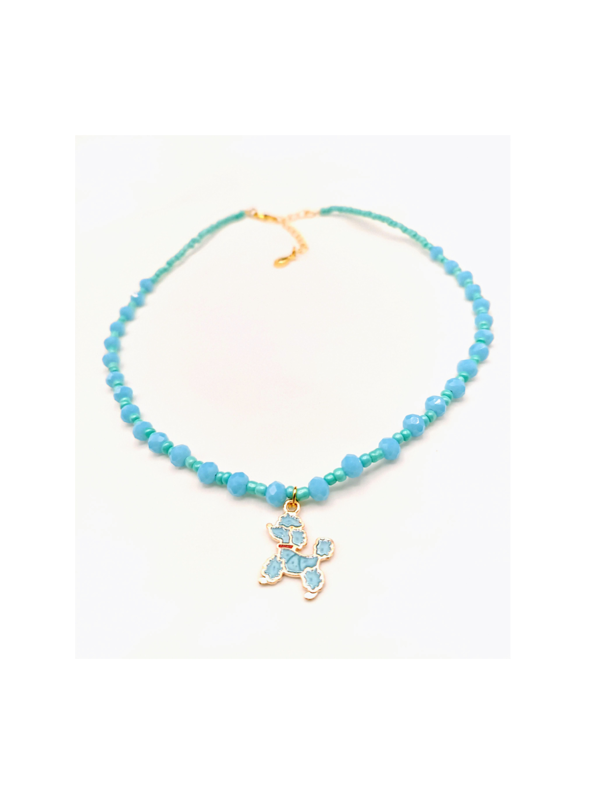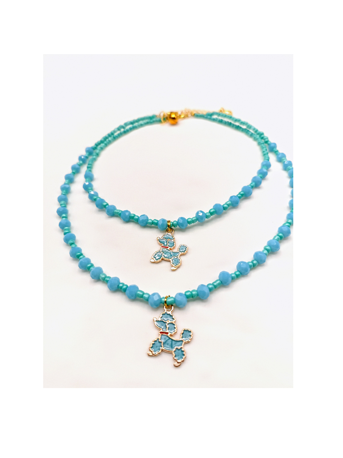 Y2K Kawaii Layered Necklace for Women – Double Strand Turquoise Beaded Choker with Gold-Plated Poodle Dog Charm – Cute Aesthetic Jewelry, Adjustable